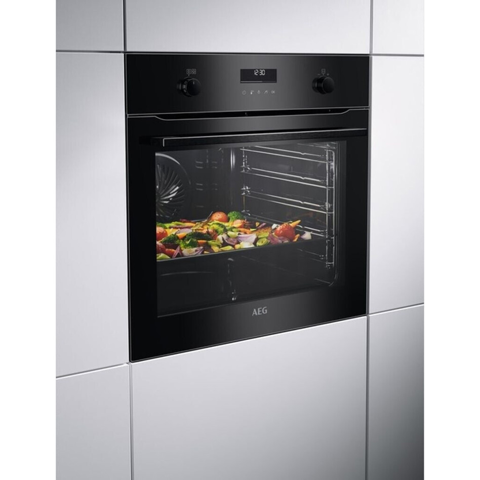 Mit einem Gewicht von 35,5 kg und den hochwertigen Materialien wie Emaille im Innenraum ist der AEG BPK556260B nicht nur funktional, sondern auch langlebig und robust. Im Lieferumfang sind außerdem ein Backblech, eine Fettpfanne und ein Grillrost enthalten, sodass Sie sofort loslegen können.
