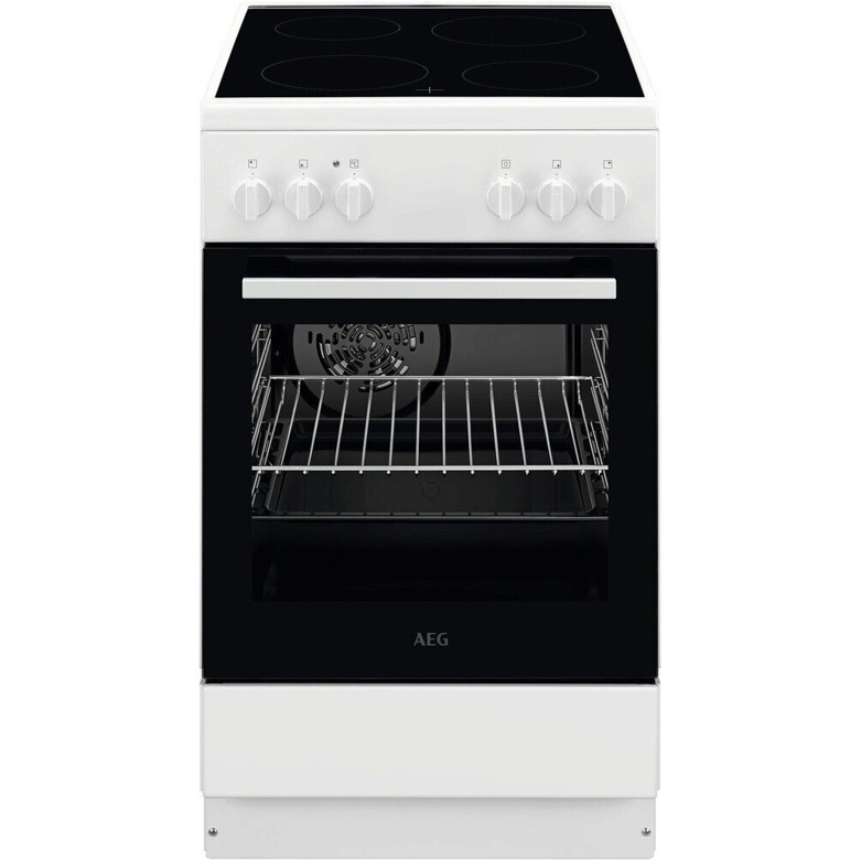 Entdecken Sie den AEG CCB54090BW, einen eleganten Standherd in zeitlosem Weiß, der sowohl durch Design als auch durch Funktionalität besticht. Mit einem Gewicht von 41 kg und einer Höhe von 85,8 cm fügt sich dieser Herd perfekt in jede moderne Küche ein. Die Breite von 50 cm und eine Tiefe von 60 cm sorgen für einen kompakten, aber dennoch geräumigen Innenraum mit einem Volumen von 57 Litern.
