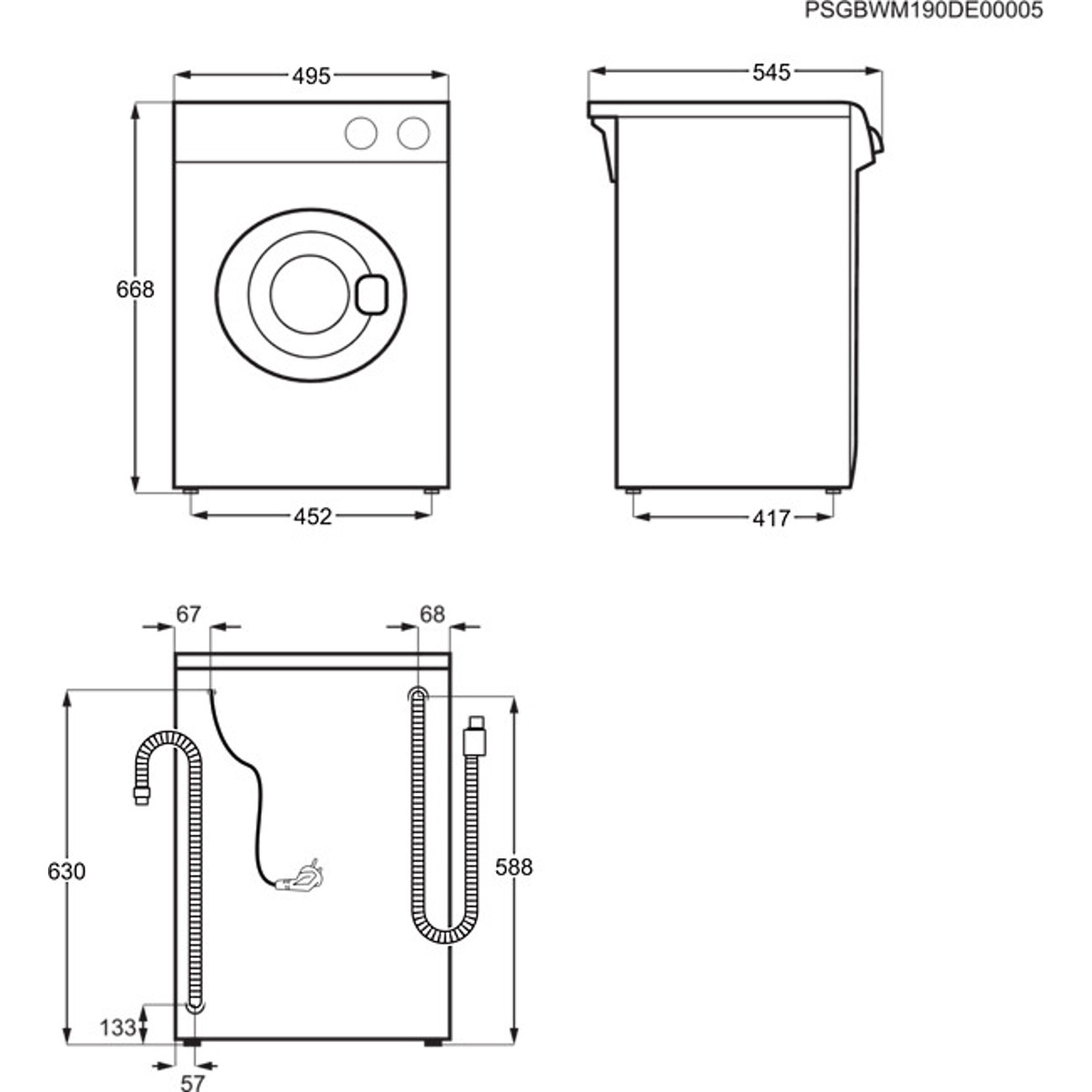 Mit einer kompakten Stellbreite von nur 49,5 cm passt diese Waschmaschine bequem in jede kleine Wohnung. Sie wiegt lediglich 50,4 kg und hat eine Höhe von 67 cm, was sie zu einer idealen Wahl für jeden Haushalt macht.