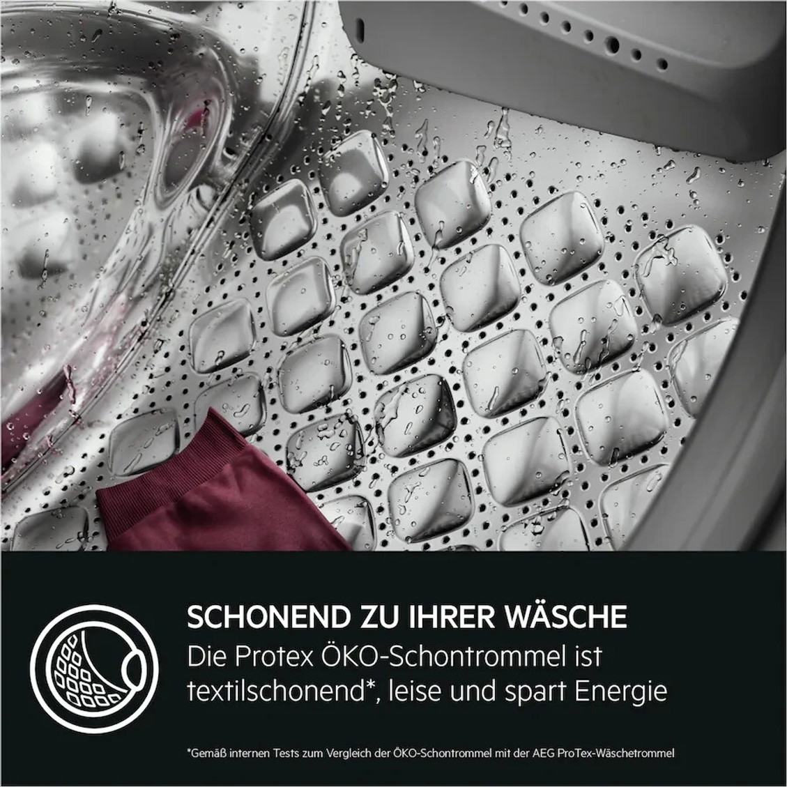 Die Dampf-Funktion und Reversierautomatik bieten zusätzliche Flexibilität, während Sie über die unterstützte App "My AEG Care" stets die Kontrolle über Ihre Wäsche haben – sogar über WLAN und kompatibel mit Google Assistant.