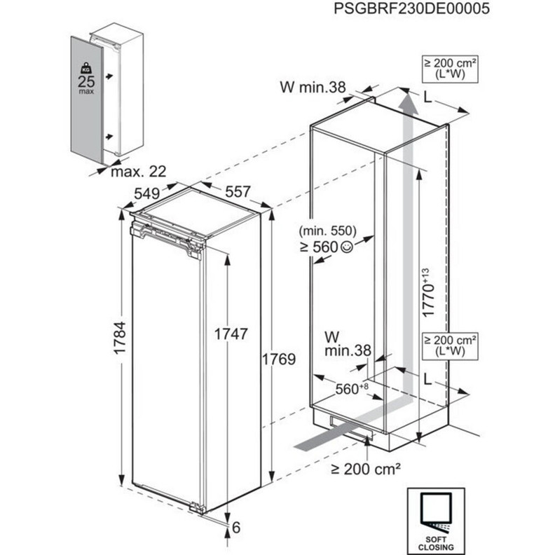 Die Höhe von 176,9 cm, Breite von 55,7 cm und Tiefe von 54,9 cm machen dieses freistehende Gerät zu einer perfekten Ergänzung Ihrer Küche. Dank einer Lagerzeit bei Störung von bis zu 10 Stunden sind Ihre Lebensmittel auch im Falle eines Stromausfalls gut geschützt.