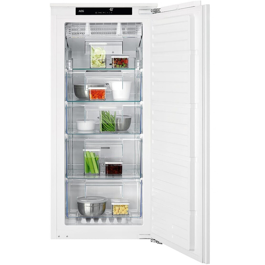 Dank der Wechselbarkeit der Türanschläge (rechts) ist der AEG OAB7N12EF flexibel platziert und bietet eine ideale Lösung für Ihre individuellen Küchendesigns. Bringen Sie mit diesem fortschrittlichen Gefrierschrank Effizienz und Stil in Ihre Haushaltsführung!
