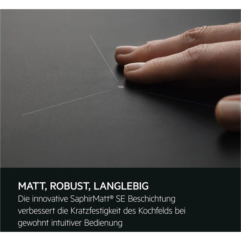 Ein besonderes Merkmal dieses Kochfeldes ist die Dunstabzugshaubensteuerung, die Ihnen das Kochen noch bequemer macht. Die Bedienelemente sind vorn angeordnet und bestehen aus einem modernen Slider und Touch-Control, um die Temperatur präzise zu regeln.