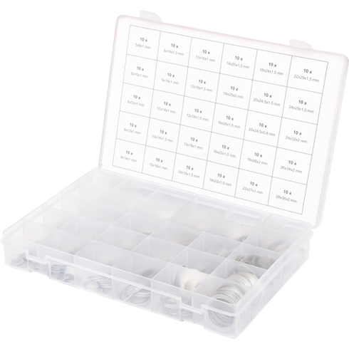 Geliefert werden die Dichtringe in einer praktischen Kunststoffkassette, die eine einfache Aufbewahrung und Organisation ermöglicht. Mit den Gewinden von M5 bis M28 sind diese Ringe vielseitig einsetzbar und erleichtern Ihnen die Arbeit erheblich.