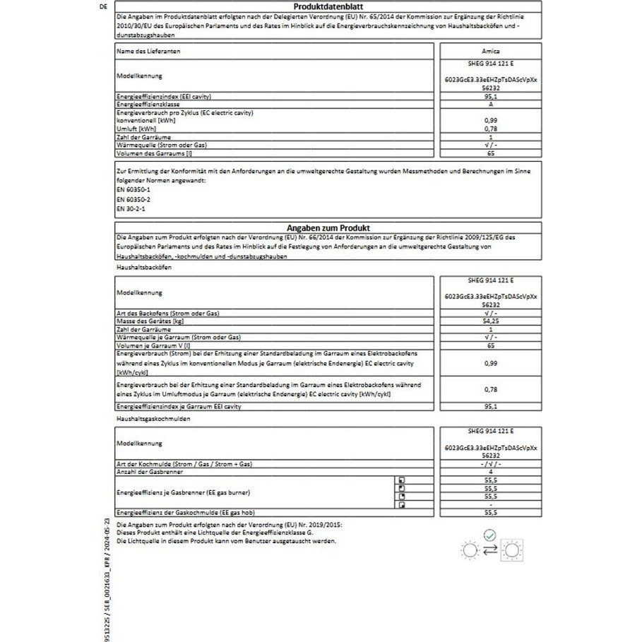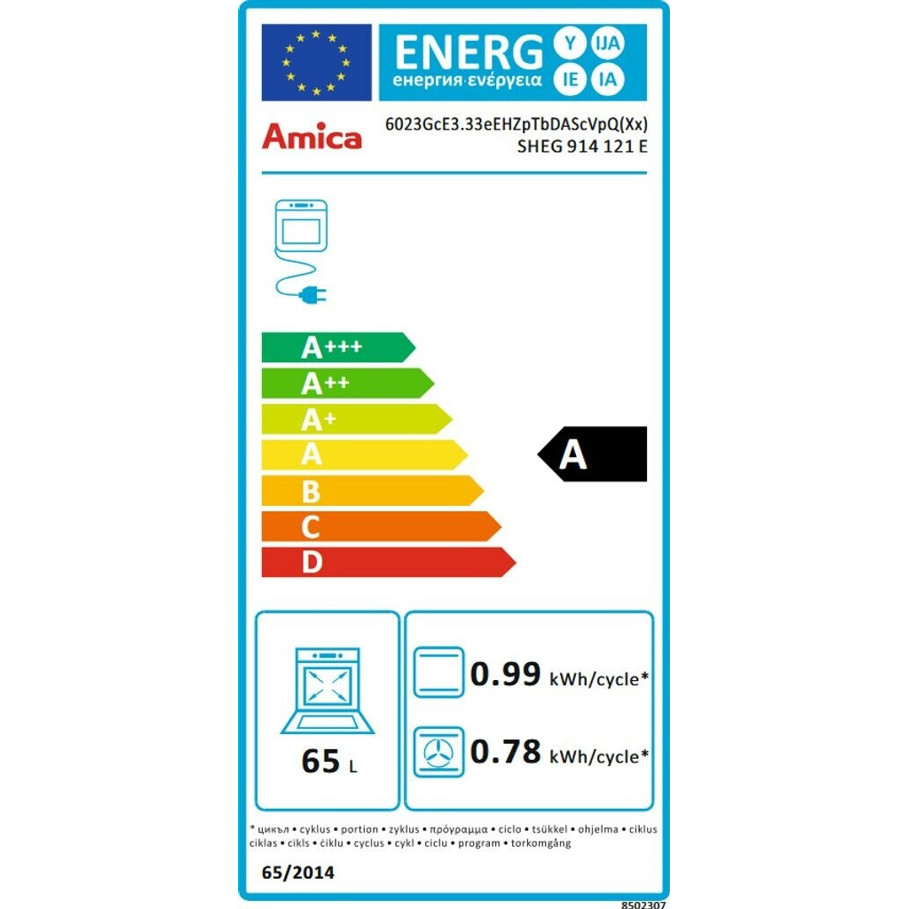Der Amica SHEG 914 121 E ist nicht nur funktional, sondern auch energieeffizient mit der Energieeffizienzklasse A. der konventionelle Energieverbrauch beträgt lediglich 0,99 kWh und für Heißluft/Umluft nur 0,87 kWh. Mit einem Anschlusswert von 3.100 Watt erleben Sie kraftvolles Kochen ohne Abstriche.