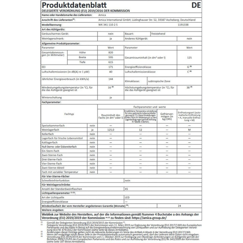 Amica WK341110-1S Weinkühlschrank - Elegante Weinlagermöglichkeit für Liebhaber