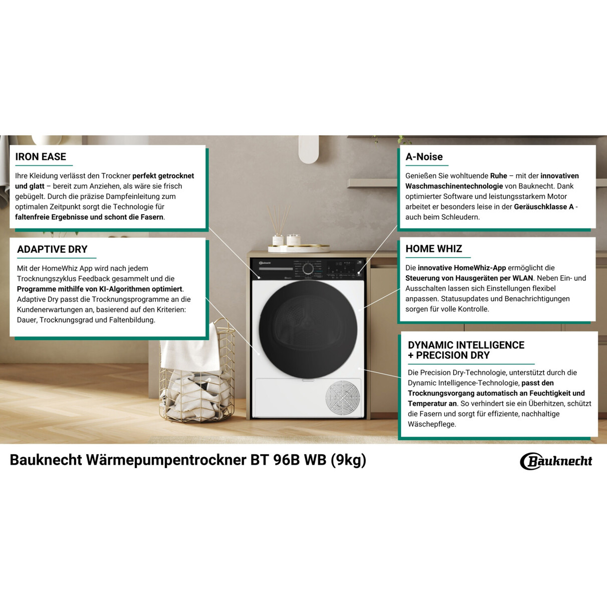 Fügen Sie den Bauknecht BT 96B WB jetzt zu Ihrem Haushalt hinzu und genießen Sie die Vorteile eines modernen Trockners, der Ihr Wäscheleben erheblich erleichtert.