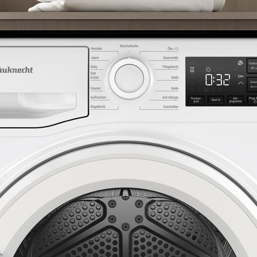 | Trockenprogramme: | Standardprogramme, Spezialprogramme, Kurz/Schnell, Anti-Allergie, Eco, Babykleidung, Daunen, Bettwäsche |