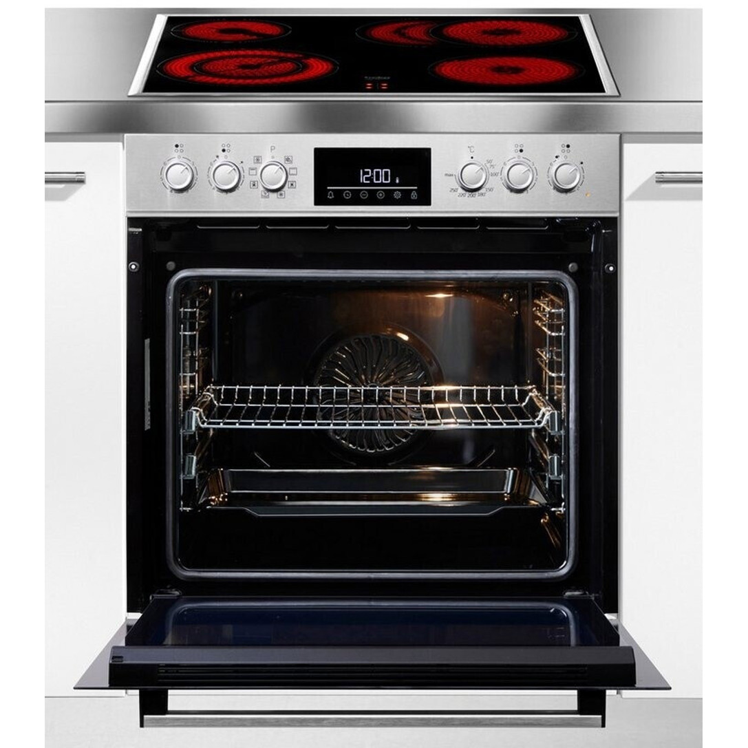 Die Klapptür und das herausnehmbare Innenglas erleichtern den Zugang und die Reinigung des Ofens. Sicherheitsmerkmale wie die Restwärmeanzeige und die Kindersicherung gewährleisten ein sicheres Kocherlebnis für die ganze Familie.