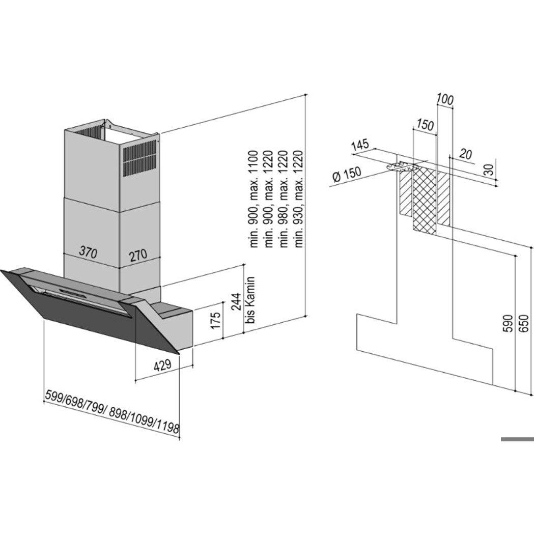 | Ausstattungen: | mit LED-Beleuchtung, spülmaschinengeeigneter Fettfilter, Teleskopkamin, Filter |
