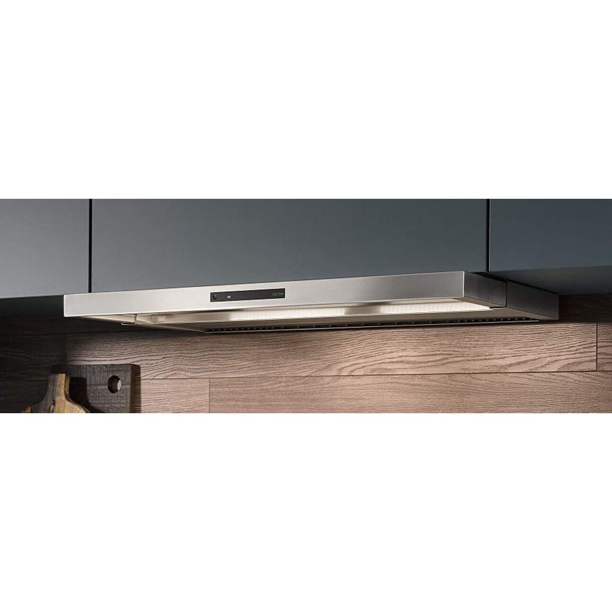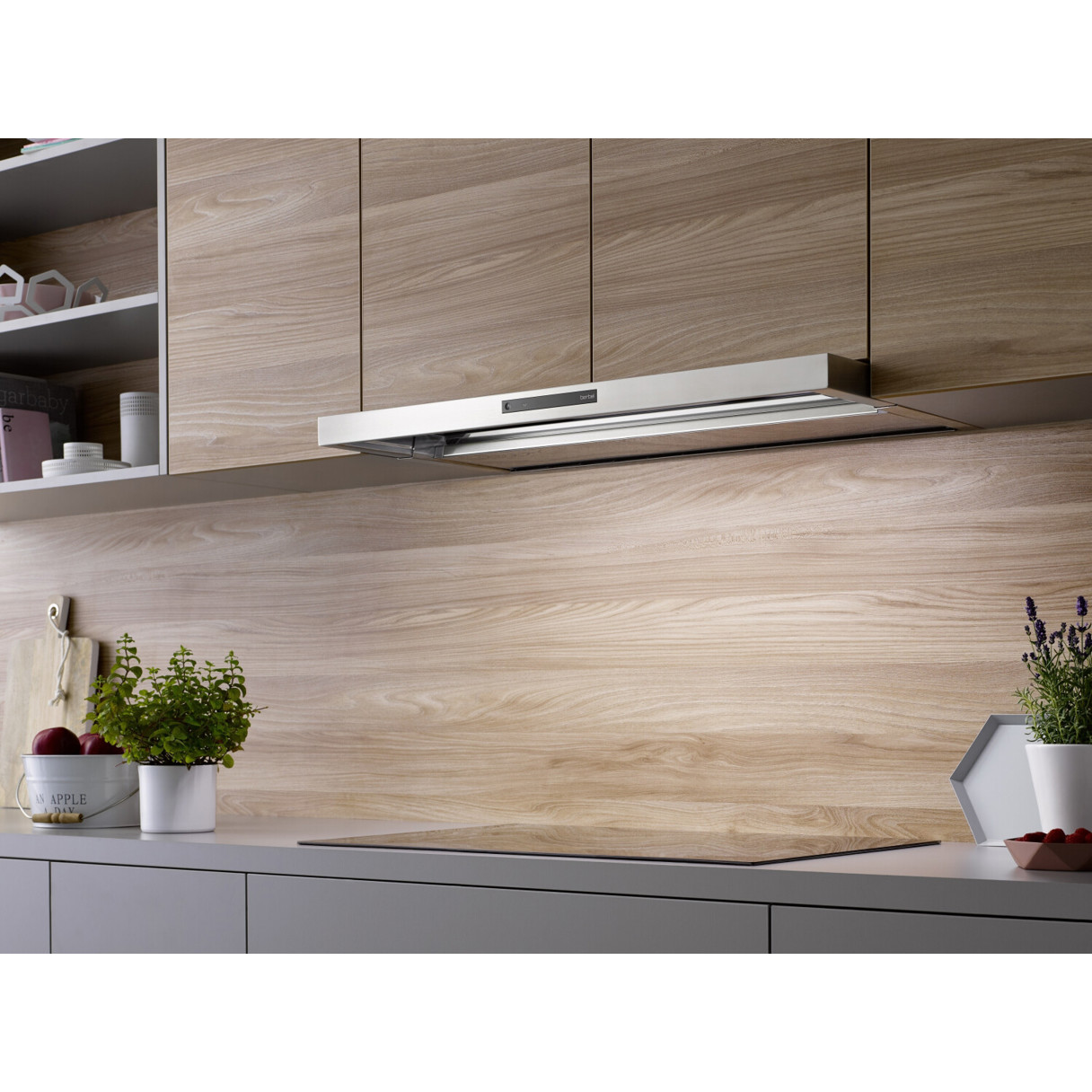 Die elektronischen Drucktasten ermöglichen eine einfache Steuerung der Funktionen, während die integrierte Abschaltautomatik für zusätzlichen Komfort sorgt. Ein besonderes Highlight ist der spülmaschinengeeignete Fettfilter aus Metall, der mit einem Aktivkohlefilter für effektives Geruchsmanagement kombiniert werden kann.