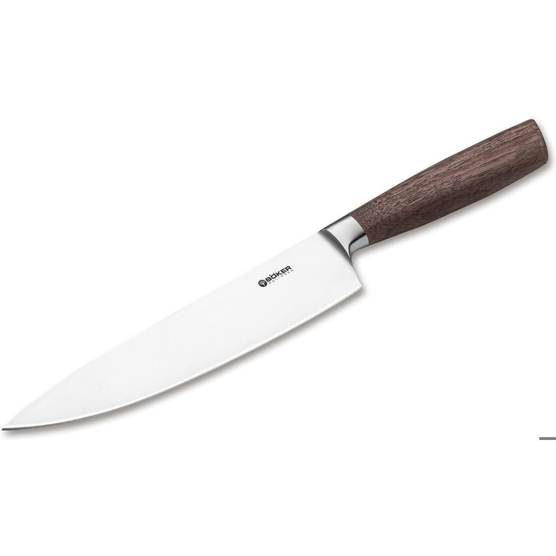 Die Griffe der Messer sind ebenfalls aus feinem Walnussholz gefertigt, was nicht nur für eine angenehme Haptik sorgt, sondern auch das elegante Design des gesamten Sets unterstreicht. Mit dem Böker Core Set bringen Sie nicht nur Funktionalität, sondern auch Stil in Ihre Küche.