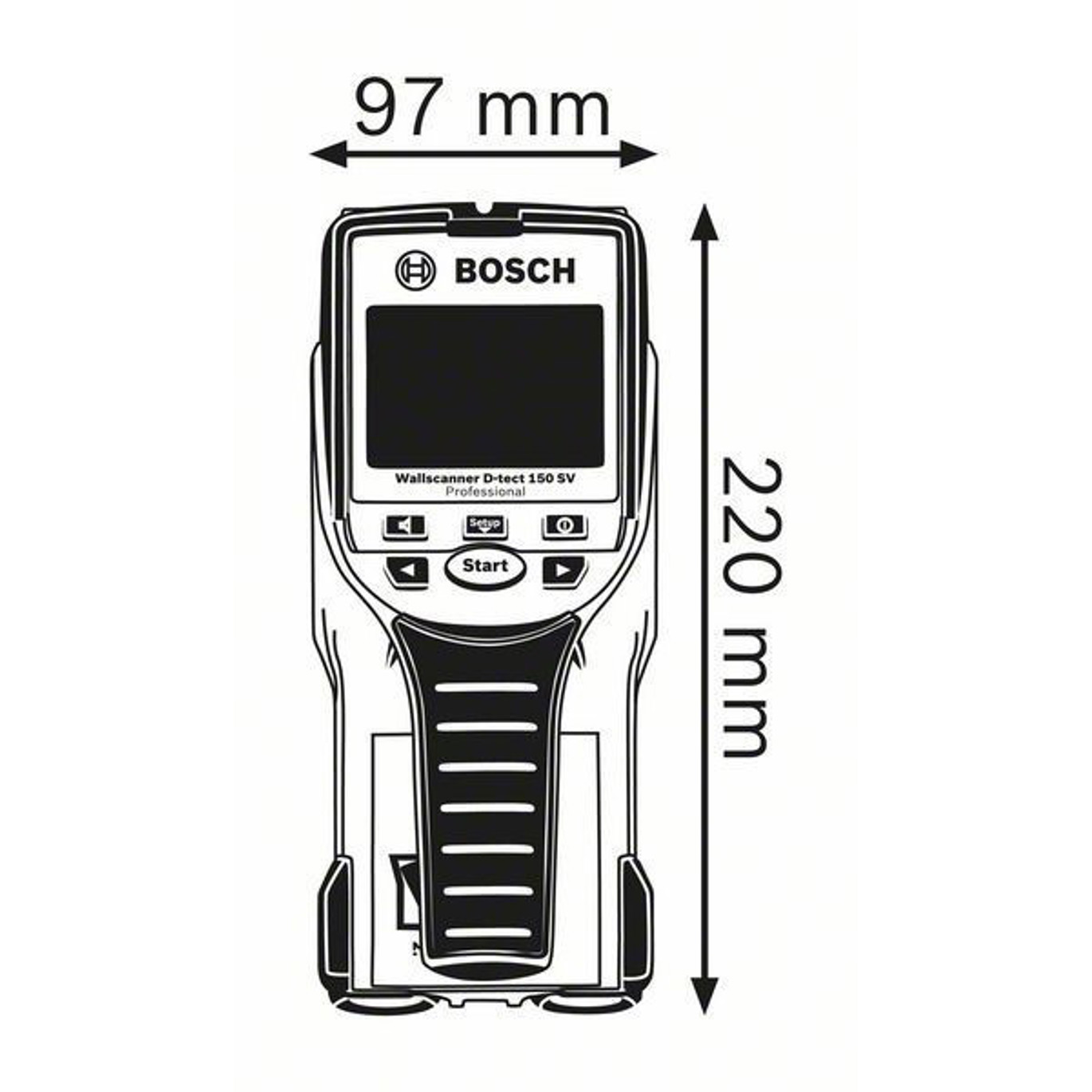 Entdecken Sie die Vorteile des Bosch Wallscanner D-tect 150 SV Professional, einem hochwertigen Leitungssucher, der speziell für professionelle Anwendungen entwickelt wurde. Mit einem Gewicht von nur 700 g und kompakten Abmessungen von 97 x 120 x 220 mm ist dieser Scanner leicht zu handhaben und ideal für den mobilen Einsatz.