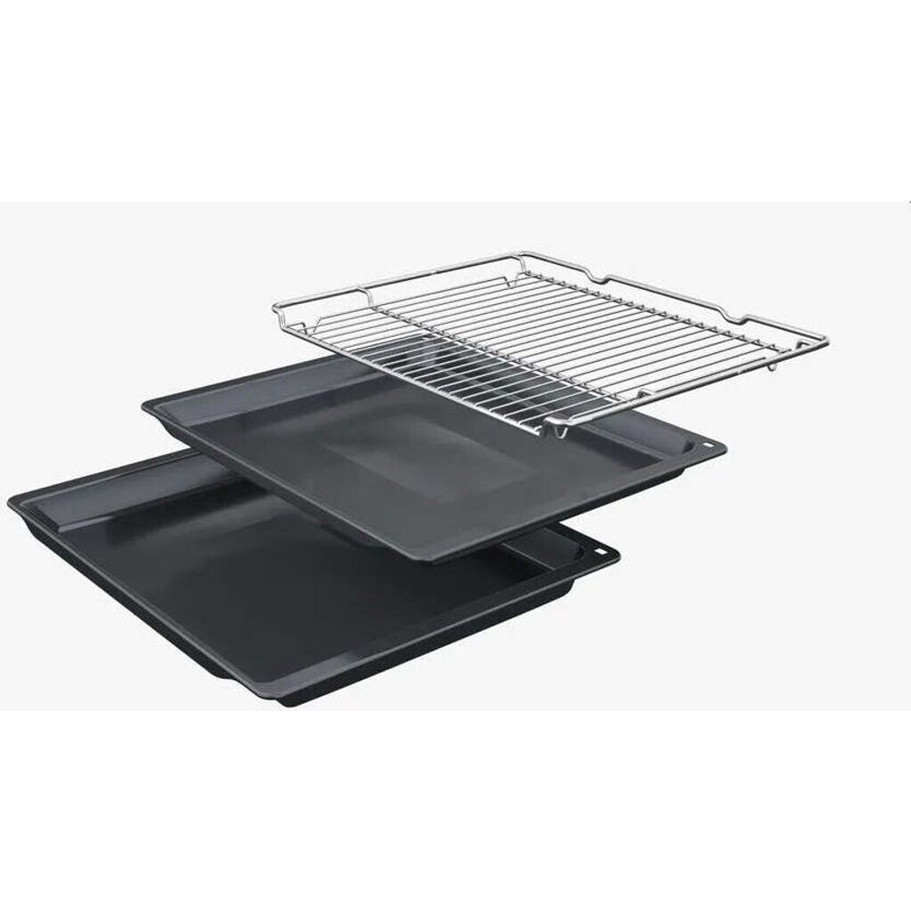 Im Lieferumfang enthalten sind ein Backblech, ein Kombirost und eine Universalpfanne, sodass Sie sofort mit dem Backen beginnen können. Der Anschlusswert von 3.600 Watt und die Netzabsicherung von 16 A sorgen dafür, dass der Backofen zuverlässig funktioniert.