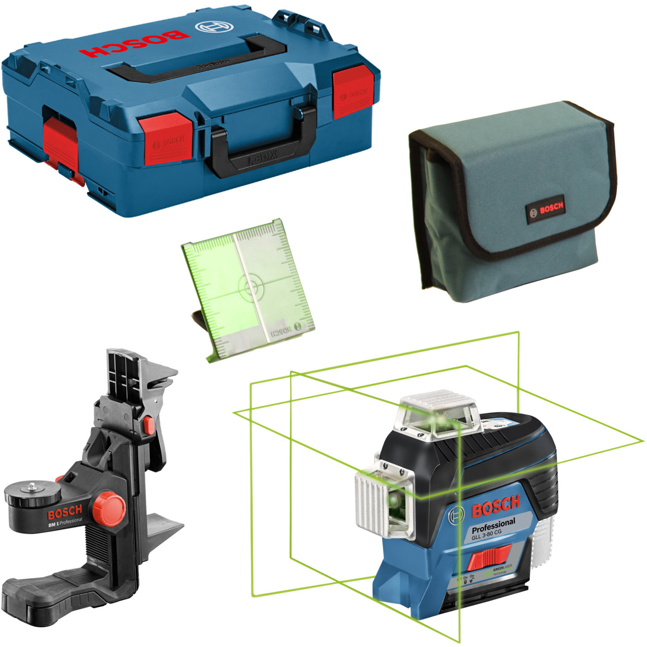 Im Lieferumfang enthalten sind das Laserzielgerät, eine L-Boxx, eine Universalhalterung und eine Transporttasche – aber beachten Sie bitte, dass kein Akku und Ladegerät im Lieferumfang enthalten sind. Für eine optimale Nutzung empfehlen wir den Einsatz der Bosch BM 1 Halterung.