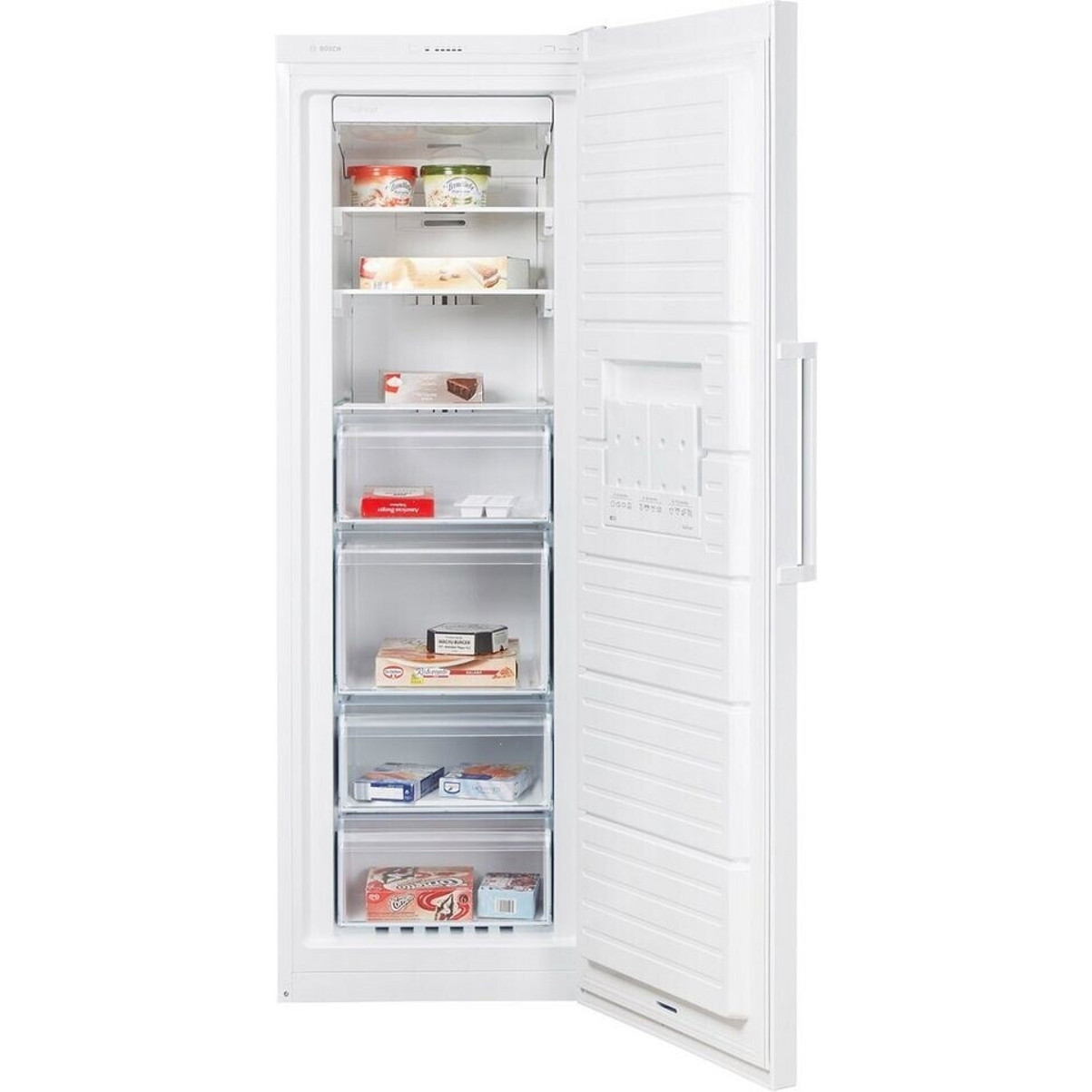 Der Bosch GSN33VWEP Standgefrierschrank präsentiert sich in einem eleganten weißen Design und ist die perfekte Lösung für große Haushalte. Mit einer Breite von 60 cm und einer Höhe von 176 cm bietet er mit einem Inhalt von 225 Litern reichlich Platz für Ihre gefrorenen Lebensmittel.