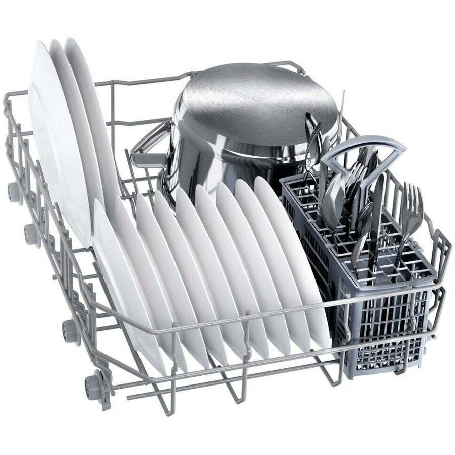 Der Bosch SPS2HKI42E bietet eine Vielzahl von 6 Spülprogrammen, darunter Eco, Intensiv und Schnellspülprogramm, unterstützt durch Optionen wie die Extra Trocknen-Funktion und ein Hygieneprogramm für besondere Sauberkeit. Der Innenraum ist intelligent gestaltet – der Oberkorb ist verstellbar, es gibt einen klappbaren Tassenablagen und einen Vario-Besteckkorb für eine flexible Besteckaufbewahrung.