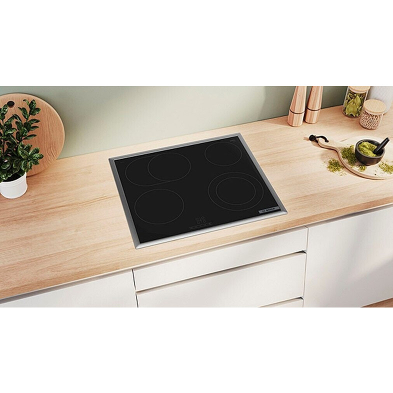 | Kochfeld-Eigenschaften: | aufliegender Einbau, mit Rahmen, Restwärmeindikator |