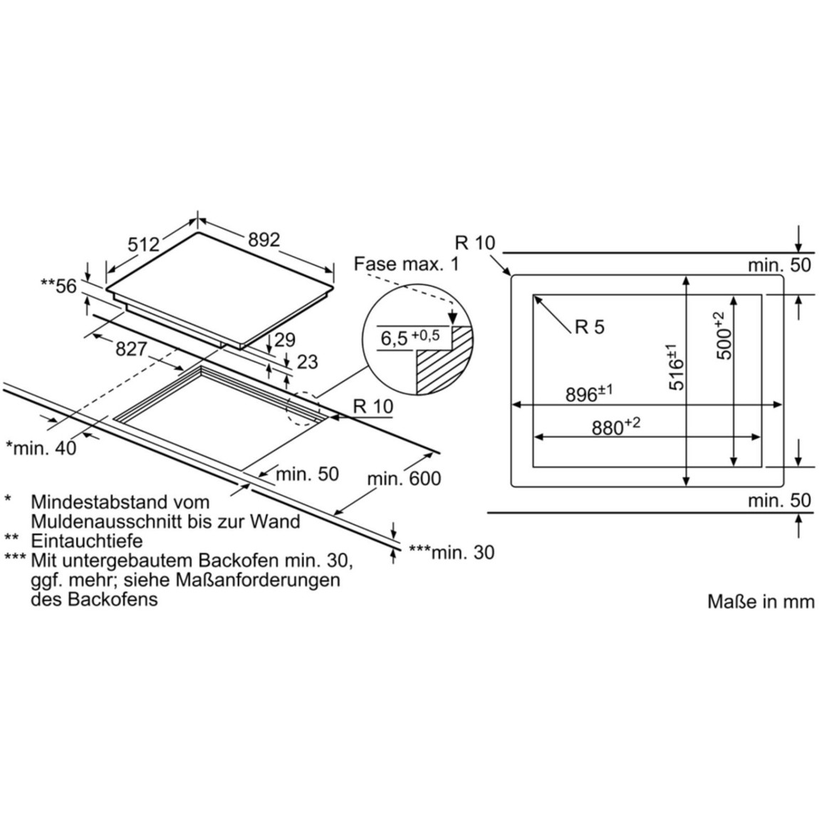 Bosch Induktionskochfeld PXV901DV1E - 90 cm, Touch Control, Schwarz