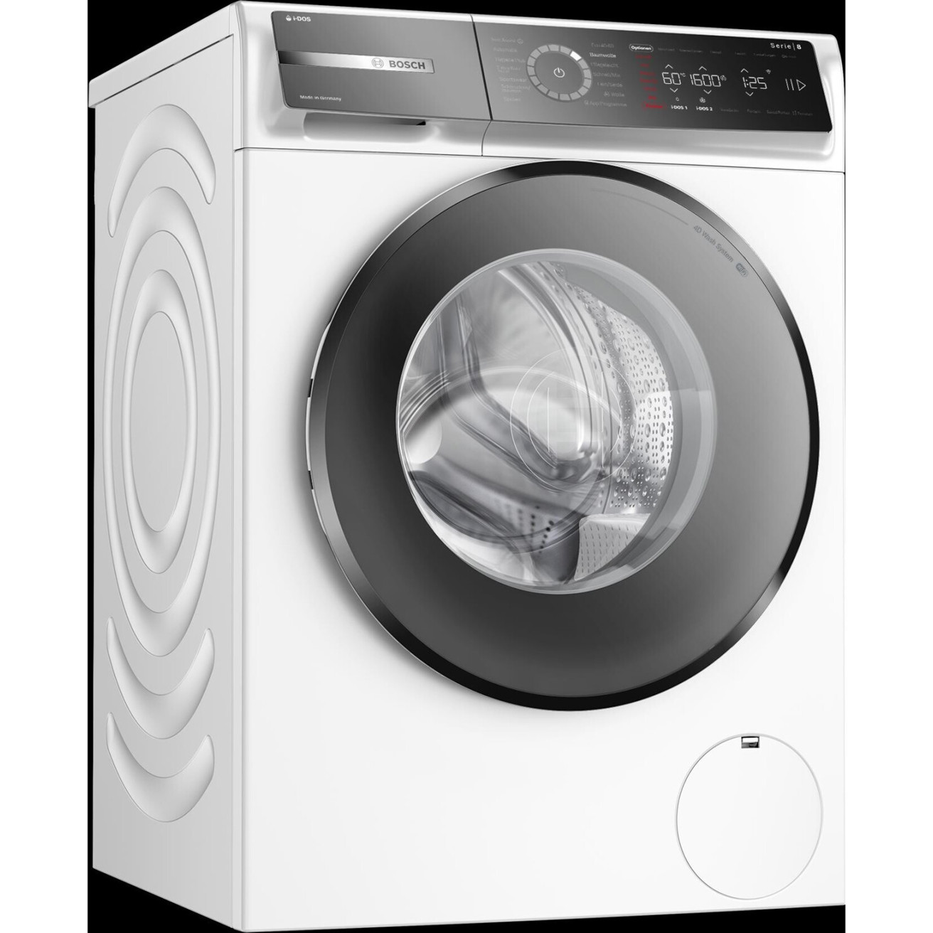 Entdecken Sie die Bosch WGB256A41, eine leistungsstarke und stilvolle Smart Waschmaschine aus der renommierten Bosch Serie 8. In elegantem weiß mit einem schimmernden schwarzen Bullauge fügt sie sich mühelos in jedes moderne Zuhause ein.