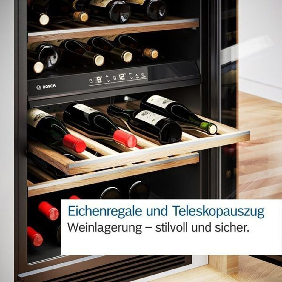 Wählen Sie mit diesem Weintemperierschrank den Inbegriff von Funktionalität und Eleganz. Der Bosch KWK16ABGB verbindet modernes Design mit praktischen Features und schützt Ihre wertvollen Weine optimal.
