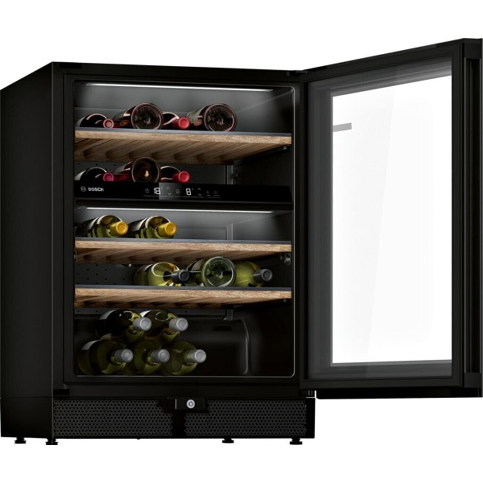 Entdecken Sie den Bosch KWK16ABGB, Ihren perfekten Partner für die stilvolle und optimale Lagerung von Wein! Mit seiner eleganten schwarzen Farbe und kompakten Abmessungen von 60 cm in der Breite und 59,3 cm in der Tiefe passt dieser freistehende Weinkühlschrank nahtlos in jede Küche.
