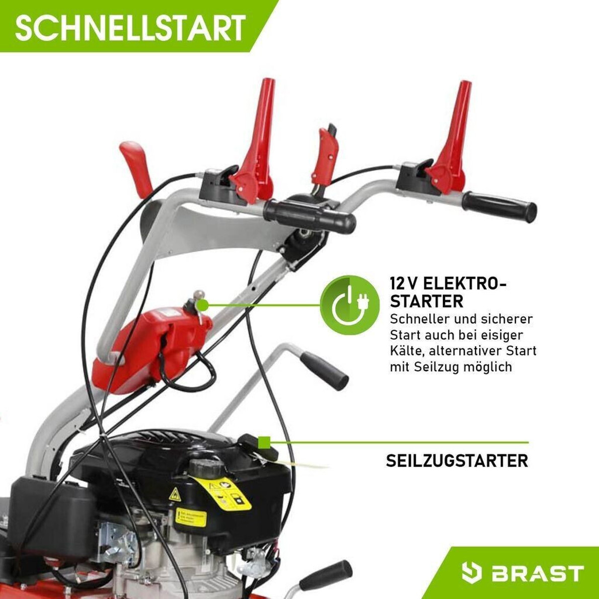 Die Brast Kehrmaschine 3 in 1 ist die perfekte Lösung für die mühelose Reinigung von Gehwegen, Auffahrten und großen Flächen. Mit einem kraftvollen 6,5 PS 4-Takt-Motor und einem Hubraum von 196 ccm bietet diese Benzin-Kehrmaschine sowohl Leistung als auch Zuverlässigkeit. Sie verfügt über ein praktisches Startsystem, das sowohl einen Seilzugstart als auch einen Elektrostart umfasst, sodass der Startvorgang immer bequem und schnell geht.