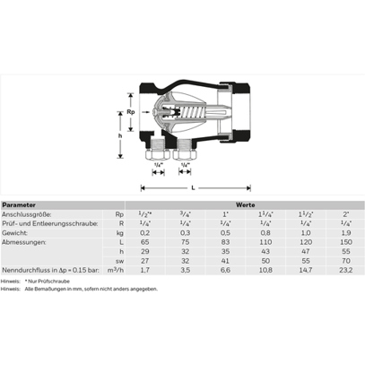 Die Innenteile bestehen aus hochwertigem Kunststoff, der für Zuverlässigkeit und Langlebigkeit sorgt, während der Lippendichtring aus NBR optimalen Schutz gegen Leckagen bietet. Zudem ist der Rückflussverhinderer-Einsatz komplett austauschbar, was eine einfache Wartung gewährleistet und die Lebensdauer des Produkts verlängert.