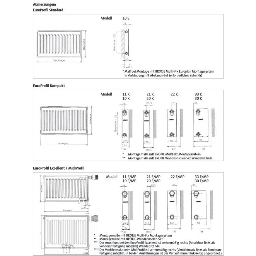 Brötje EuroProfil Kompaktheizkörper Typ 22K - 600x1200 mm (080712) | Heizkörper