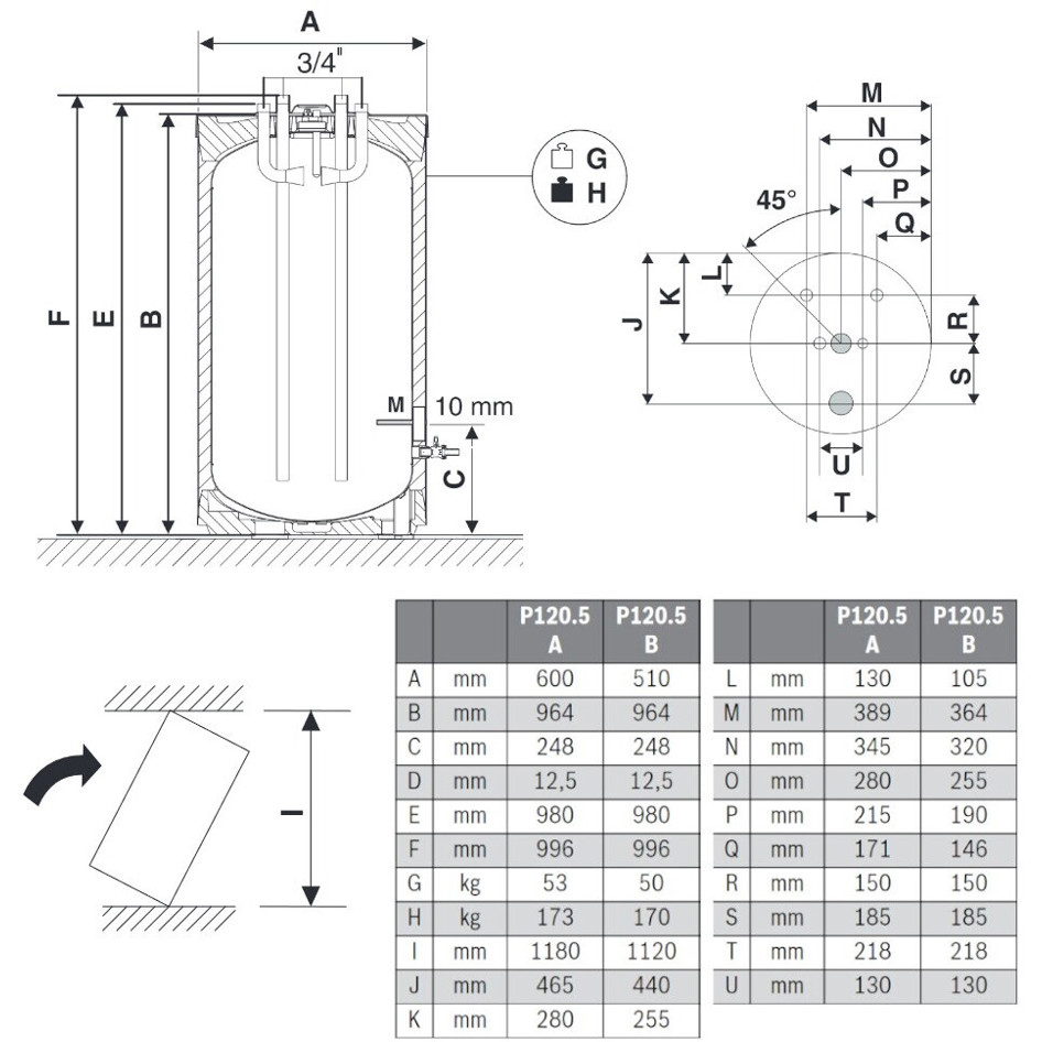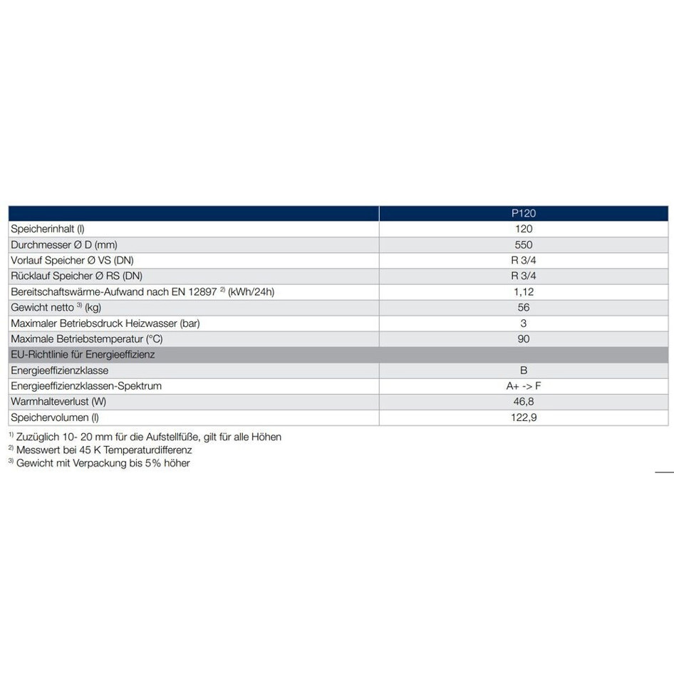Der Buderus Logalux P120.5 wird indirekt beheizt und zeichnet sich durch seine nach unten gerichtete Montageart aus. Mit einer Energieeffizienzklasse von B sorgt er dafür, dass Ihr Energieverbrauch optimal genutzt wird. Die robuste Hartschaumisolierung gewährleistet exzellente Wärmehaltung, während der Warmhalteverlust mit nur 47 Watt äußerst gering ist.