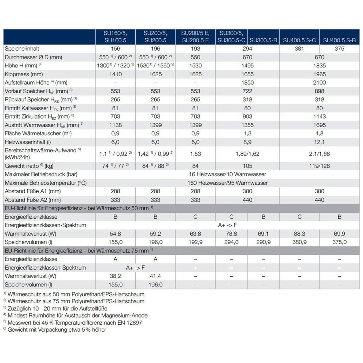 Mit Abmessungen von 55 cm Breite, 55 cm Tiefe und 153 cm Höhe (inklusive Isolierung) passt der Buderus Logalux SU 200/5 optimal in Ihre Räumlichkeiten. Beachten Sie bitte, dass bei der Installation in einem geschlossenen Wasserkreislauf ein Sicherheitsventil dringend zu empfehlen ist und das Gerät vor der Inbetriebnahme mit kaltem Wasser gefüllt werden muss.