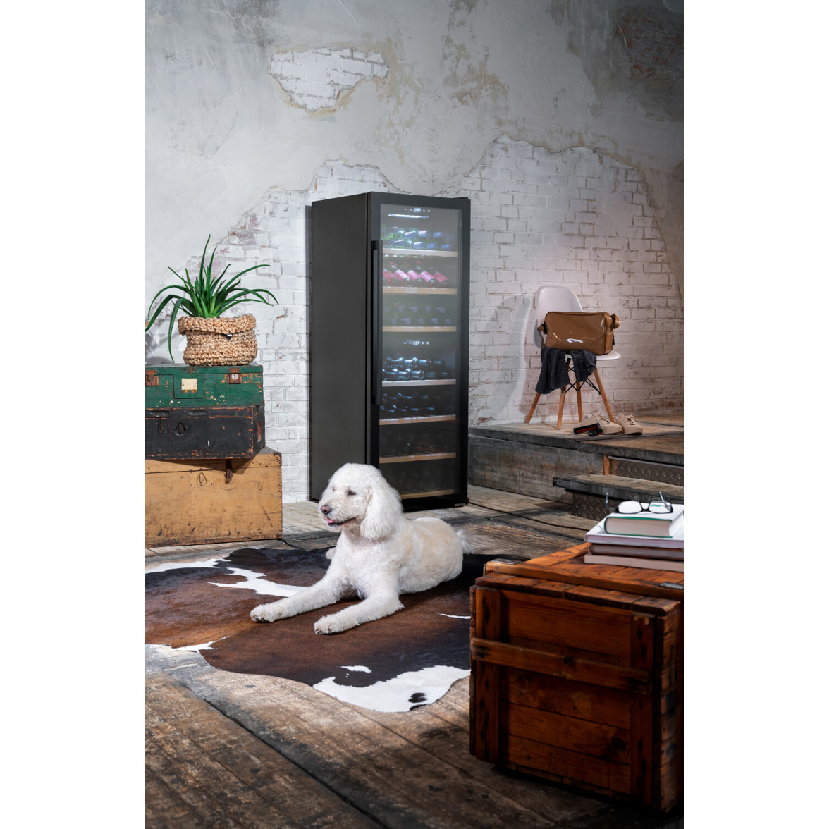 Der Weinschrank bietet Platz für bis zu 126 Flaschen (á 0,75 l) und hat einen Nutzinhalt von 291 Litern. Dank der zwei Temperaturzonen können Sie unterschiedliche Weinsorten optimal lagern, wobei der Temperaturbereich zwischen 5 °C und 20 °C liegt. Die Glastür mit UV-Filter und die Innenraumbeleuchtung gewährleisten, dass Ihre Weine sowohl stilvoll als auch geschützt präsentiert werden.