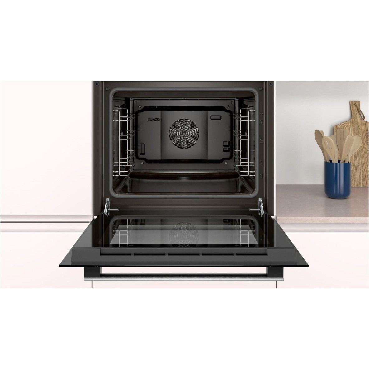 Der Backofen ist mit einem Innenraum-Volumen von 66 Litern und robustem glatten Emaille ausgestattet. Die Garraumbeleuchtung und die Uhr sorgen dafür, dass Sie immer den Überblick behalten. Sicherheit wird ebenfalls großgeschrieben: Das Kühlgebläse sowie die Restwärmeanzeige gewährleisten eine sichere Nutzung.