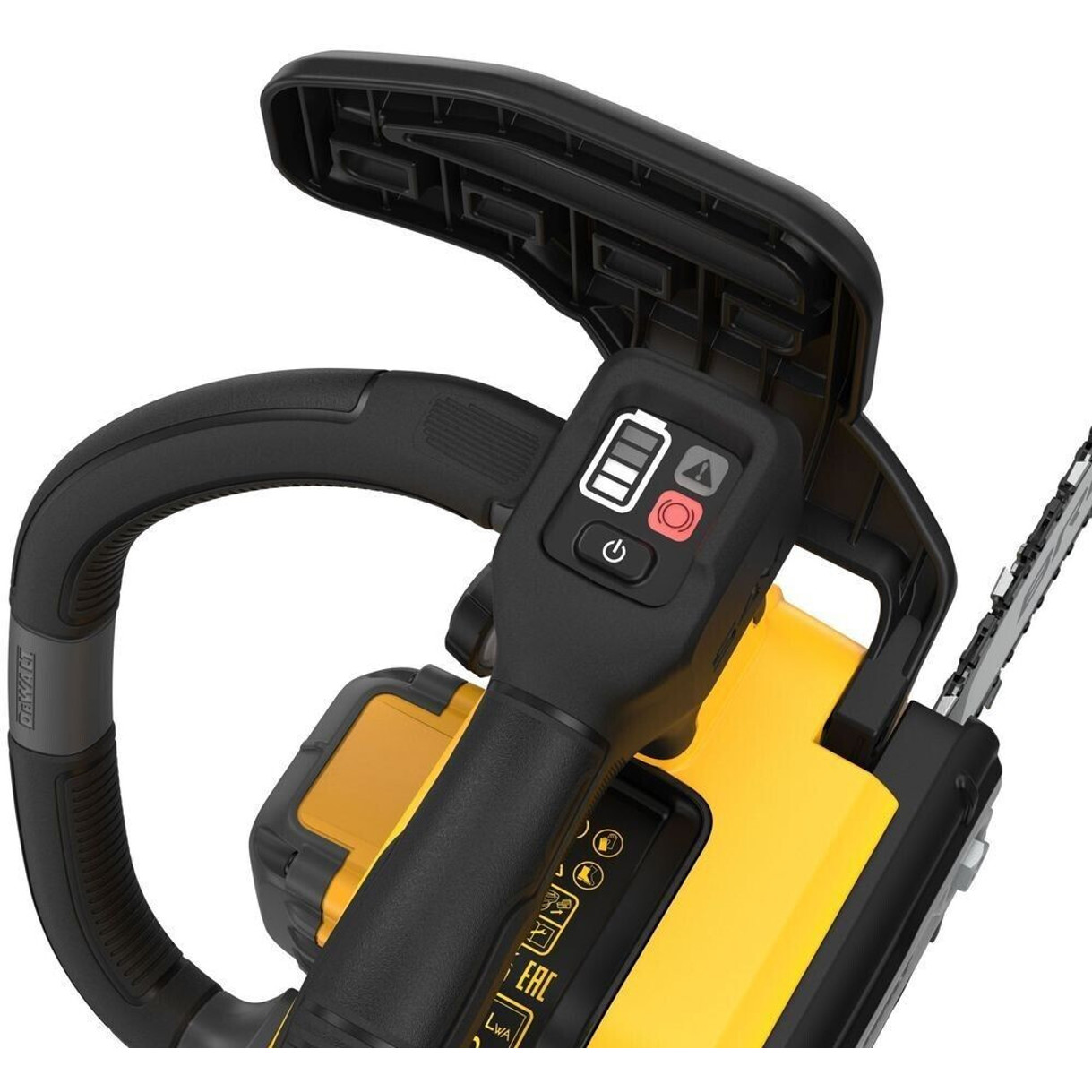 Zusätzlich ausgestattet mit einem Zusatzhandgriff und Anschlagkrallen, bietet die DeWalt Akku Kettensäge sowohl Komfort als auch Sicherheit beim Einsatz. Bitte beachten Sie, dass eine umfangreiche Einweisung in die Nutzung und Sicherheitskleidung erforderlich ist, um die Gefahren einer Kettensäge richtig einschätzen zu können.