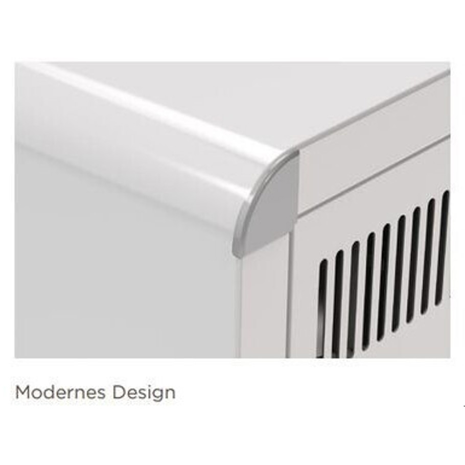 Das Gehäuse aus pulverbeschichtetem Stahlblech sorgt für Langlebigkeit und eine ansprechende Optik. Mit Maßen von 664 mm in der Höhe, 622 mm in der Breite und 250 mm in der Tiefe ist dieses Heizgerät kompakt und lässt sich problemlos in Ihre Wohnräume integrieren. Trotz des robusten Designs beträgt das Gewicht lediglich 127 kg.