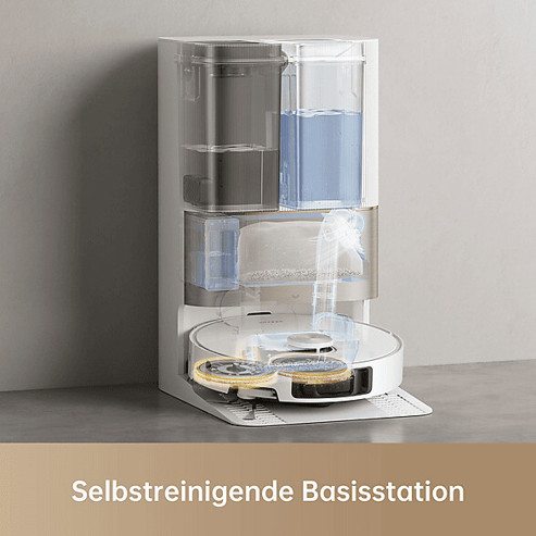 Der Dreame X40 arbeitet mit beutelloser Saugtechnologie und einem vielfältigen Filtersystem mit Abluftfilter, um Staub, Haare und Schmutz effizient zu entfernen. Die Raumerkennung per Laser erlaubt eine präzise Navigation, während der Schmutzerkennungssensor dafür sorgt, dass selbst die verborgensten Ecken gereinigt werden.