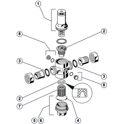 Dank des hochwertigen Gehäuses aus entzinkungsbeständigem Messing sowie der korrosionsfesten, austauschbaren Kunststoffteile bietet dieser Druckminderer nicht nur Langlebigkeit, sondern auch höchste Zuverlässigkeit. Der Ventileinsatz ist einfach zu warten und sorgt für optimale Funktionalität über die gesamte Lebensdauer.
