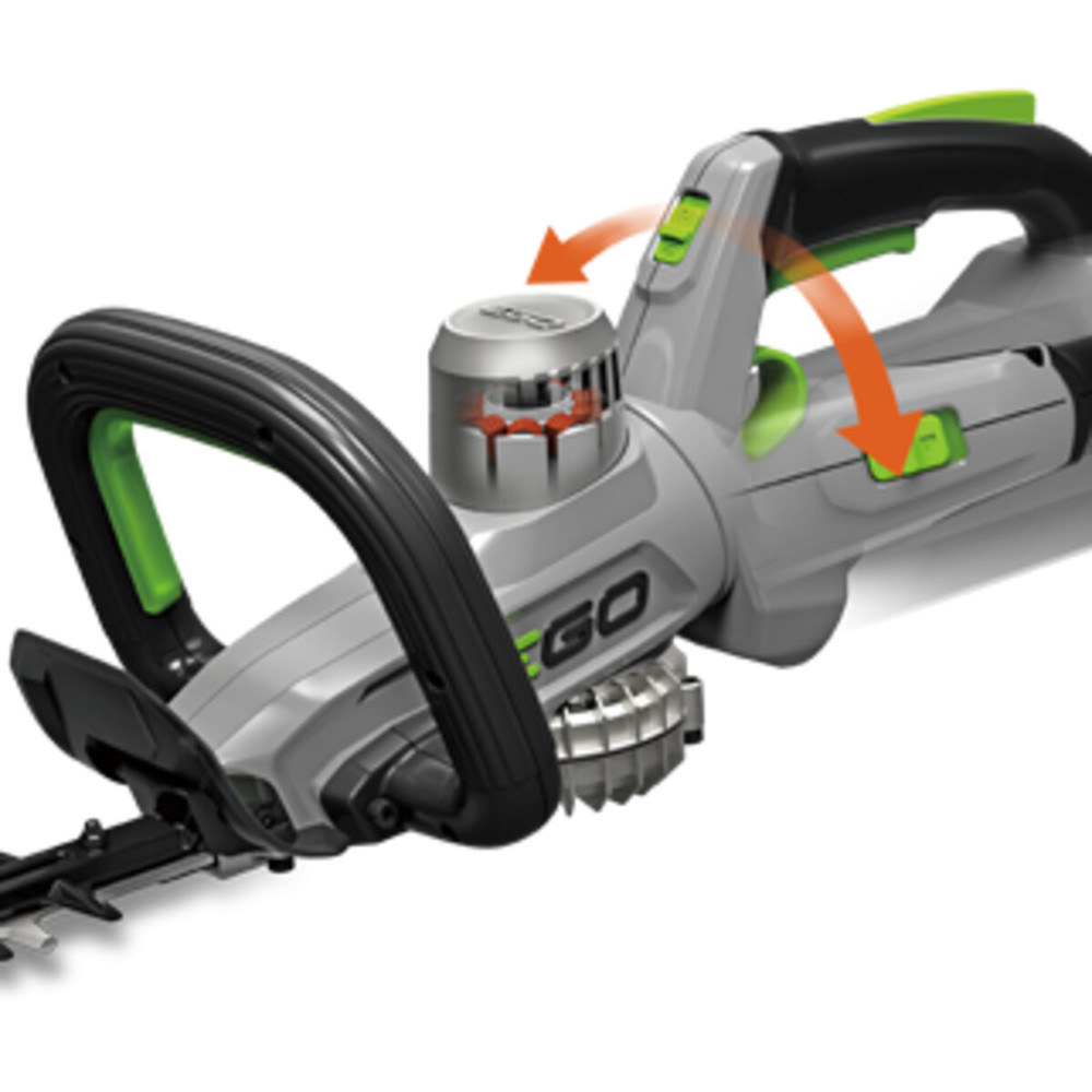 Zusätzlich zu ihren leistungsstarken Funktionen bietet die EGO HT5100E Sicherheitseinrichtungen wie einen Anstoßschutz, um Unfälle zu vermeiden. Der drehbare hintere Handgriff ermöglicht eine flexible Handhabung für ergonomisches Arbeiten.