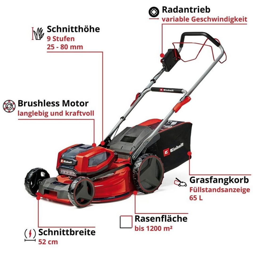 Einhell GP-CM 36/52 S Li BL Rasenmäher - inkl. 4 Akkus (5,2 Ah) & 2 Ladegeräten