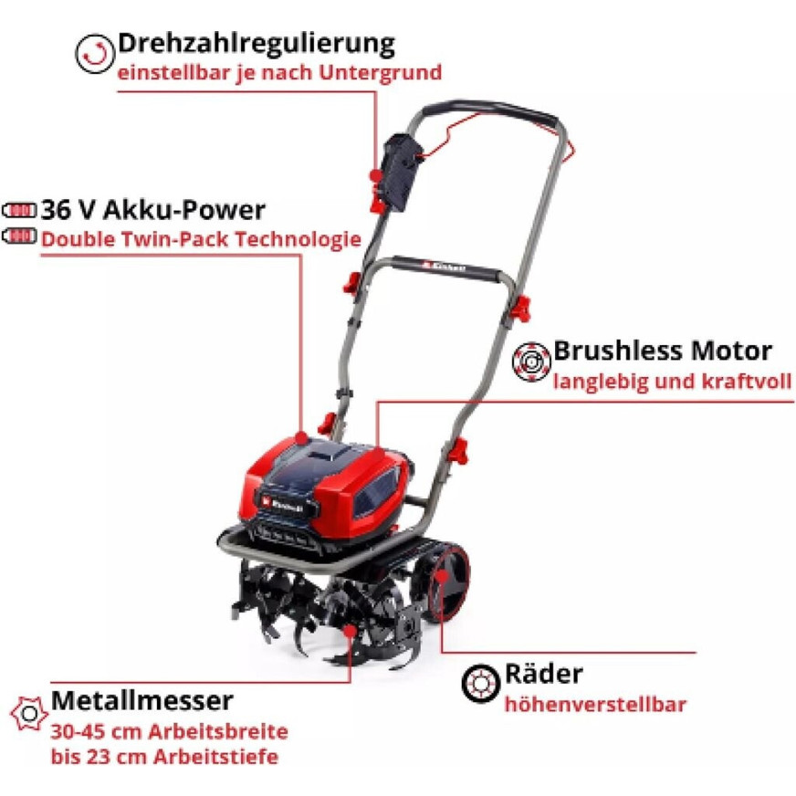 Einhell GP-CR 36/45 Li E BL Solo - Akku-Motorhacke für den Garten