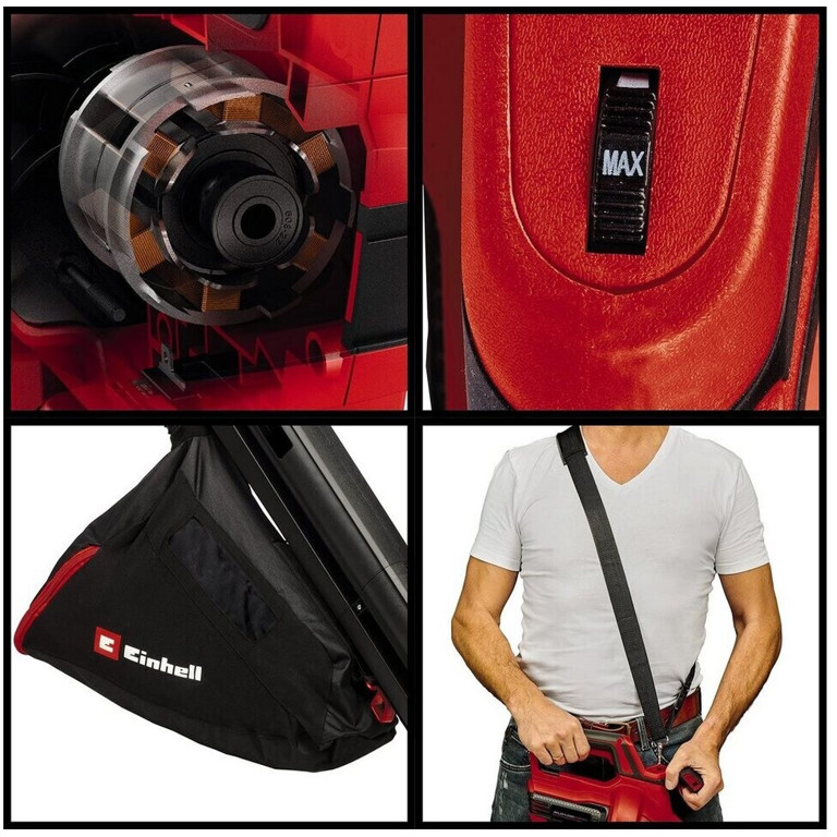 Der Laubsauger verfügt zudem über eine umfassende Ausstattung, die ein Ladegerät, einen Auffangsack mit einem Volumen von 45 Litern und einen praktischen Tragegurt umfasst. Die Funktionen häckseln, blasen und saugen bieten Ihnen optimalen Komfort und Flexibilität bei der täglichen Gartenpflege.