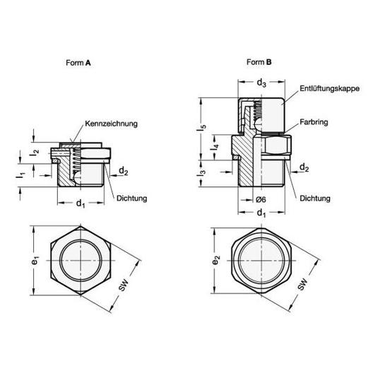 Entlüftungsventile GN 883-M16X1,5-20-B-MS
