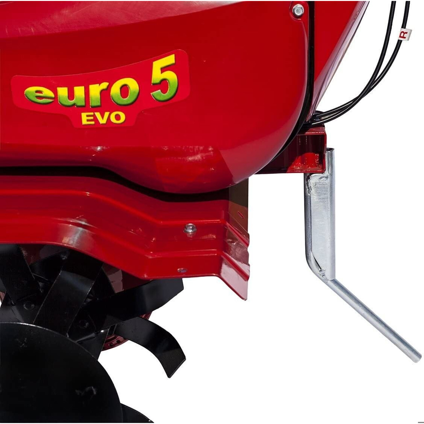 Die Eurosystems Euro 5 EVO sorgt für Sicherheit während des Betriebs dank der seitlichen Messerschutzscheiben, die zusätzlichen Schutz bieten. Mit einem Hubraum von 182 cm³ und der Energiequelle Benzin liefert dieser Motor auch in schwierigen Böden die notwendige Leistung.