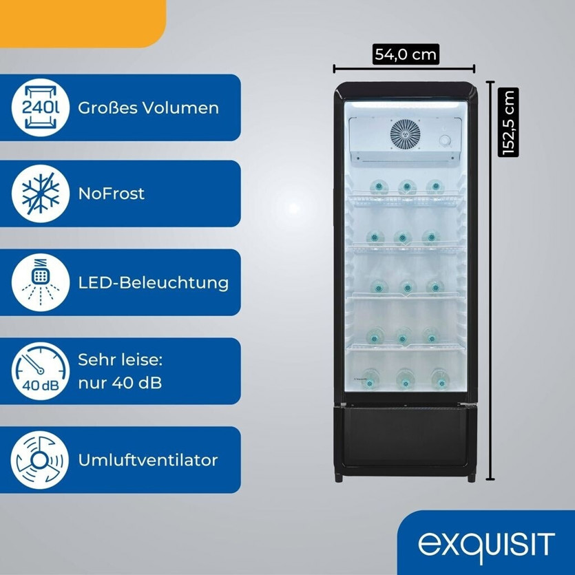 Entdecken Sie den Exquisit GKS220-GT-430D Getränkekühlschrank, der in elegantem schwarz gehalten ist und dank seiner modernen Technologie Ihr Kühlbedürfnis perfekt erfüllt. Mit einer Breite von 54 cm und einer Tiefe von 56 cm passt er ideal in jede Küche oder Bar. Der Kühlschrank verfügt über ein effektives Umluftkühlsystem und ist mit der No-Frost Technologie ausgestattet, sodass Sie sich von lästigem Eis und Frost verabschieden können.