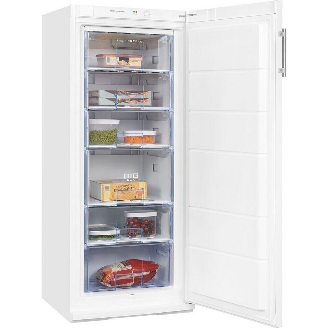 Dieser freistehende Gefrierschrank ist mit einer Energieeffizienzklasse von E ausgestattet und sorgt somit für einen energieeffizienten Betrieb mit einem Stromverbrauch von nur 201 kWh/Jahr. Der Geräuschpegel liegt bei angenehmen 41 dB(A), sodass Sie ihn problemlos auch in offenen Wohnbereichen nutzen können.