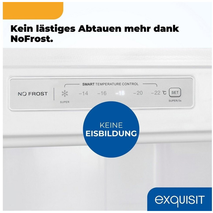 Die 4-Sterne-Gefrierklasse garantiert Ihnen, dass Ihre Lebensmittel unter optimalen Bedingungen gelagert werden. Dank der No-Frost-Technologie gehört lästiges Abtauen der Vergangenheit an. Die hochwertige Energieeffizienzklasse D sorgt für einen jährlichen Stromverbrauch von nur 222 kWh, was zu jährlichen Stromkosten von 66,6 Euro führt.