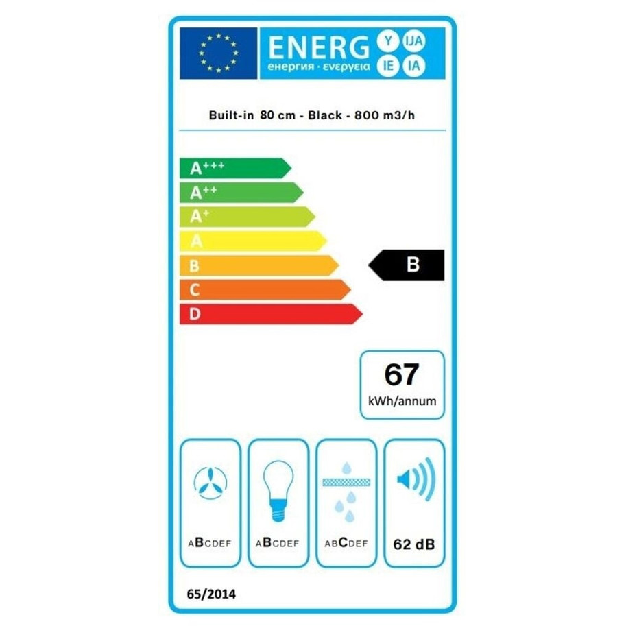 Die Energieeffizienzklasse B und der Stromverbrauch von nur 65 kWh/Jahr machen die Falmec Move 80 zu einer umweltfreundlichen Wahl. Genießen Sie eine angenehme Beleuchtung dank moderner LEDs in warmweiß mit einer Farbtemperatur von 3500 K.