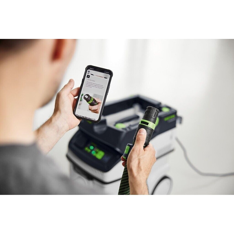 Der Festool CTL 26 Ei AC ist nicht nur leistungsfähig, sondern auch leicht zu transportieren – mit einem Gesamtgewicht von 13,9 kg und den stilvollen Farben in weiß, schwarz und grün passt er sich jedem Arbeitsumfeld an.