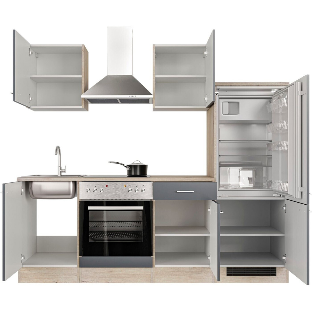 Flex-Well Küchenzeile Morena 220 cm - Inklusive E-Geräten - Basaltgrau San Remo Eiche