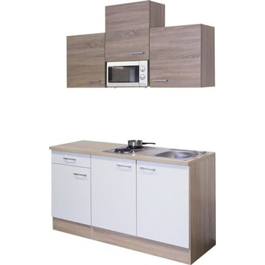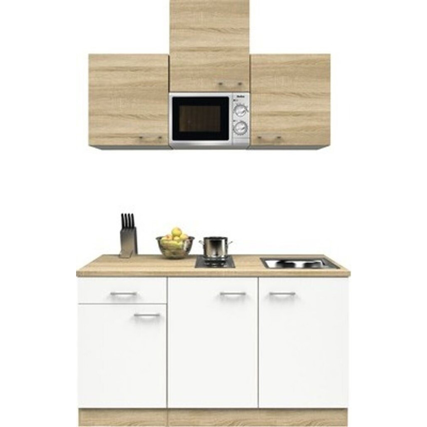 Flex-Well Singleküche 150 cm - Samoa Eiche, Matt Weiß, mit Geräten